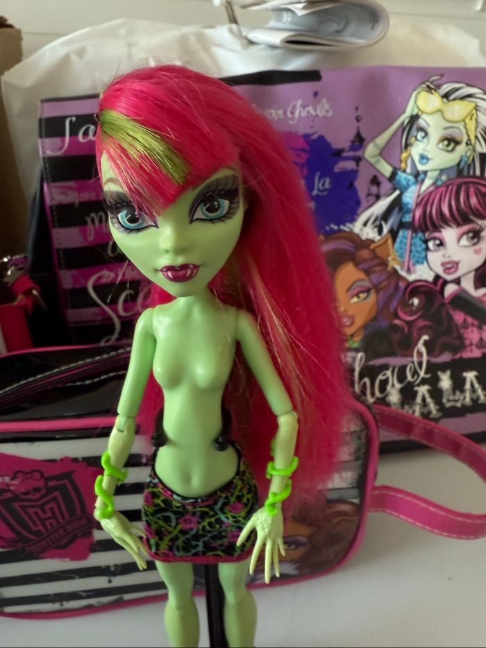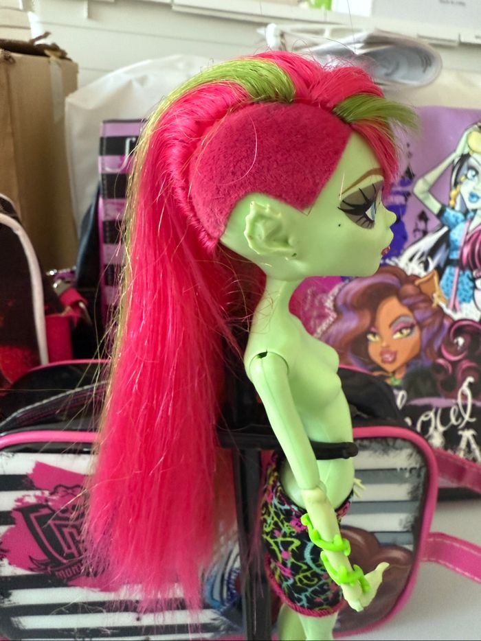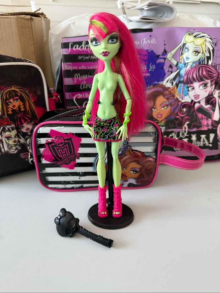Bonjour à tous les Vinties, Je vends une poupée Monster High Venus Mc Flytrap Ghoul Spirit année 2013. Il lui manque le mégaphone, le tee-shirt et les boucles d’oreilles, vendu dans l’état sans le pied noir. Si vous avez des questions ou vous voulez plus d’informations (photos ou mesures), je suis disponible.