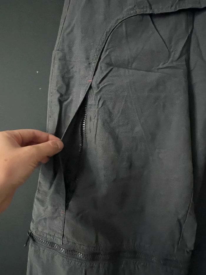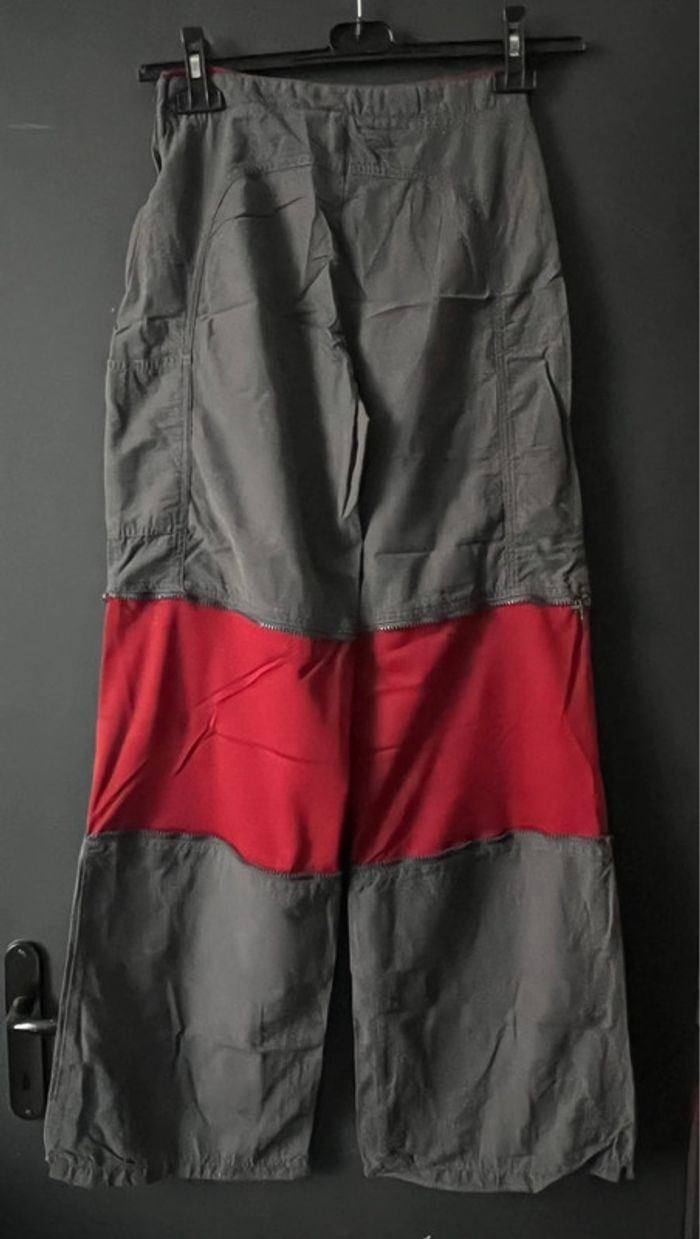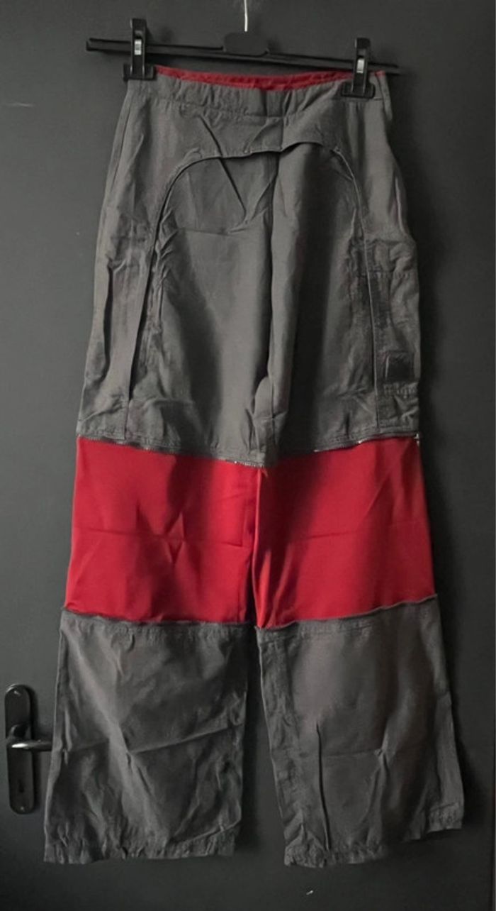 Pantalon / Pantacourt de fitness - sport S’ouvre sur le côté avec une fermeture éclair. Pantalon qui peut se transformer en Pantacourt Tissus rouge en maille respirante Taille: 38 Mesures: - tour de taille: 32cm (se porte en dessous du nombril) - longueur entrejambe - en pantalon: 75cm -en pantacourt: 54cm -longueur total -en pantalon: 104cm -en pantacourt: 80cm ❗️manque le lacet à la taille et en bas des jambes.