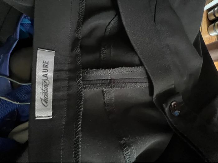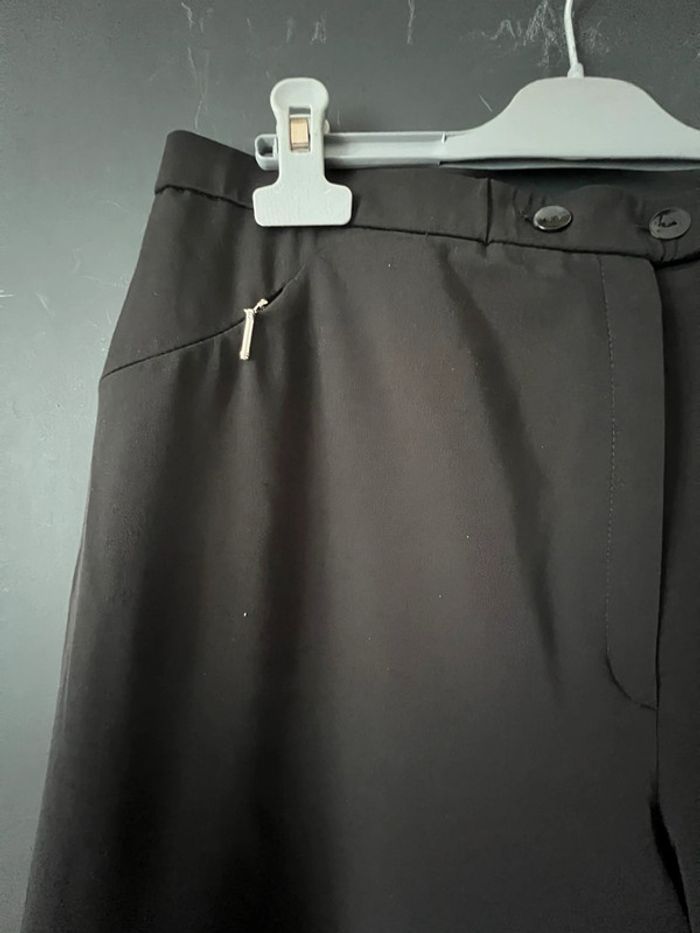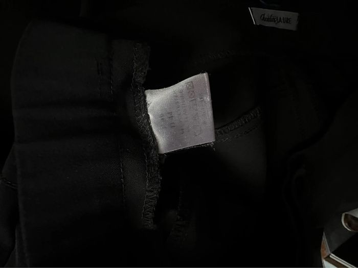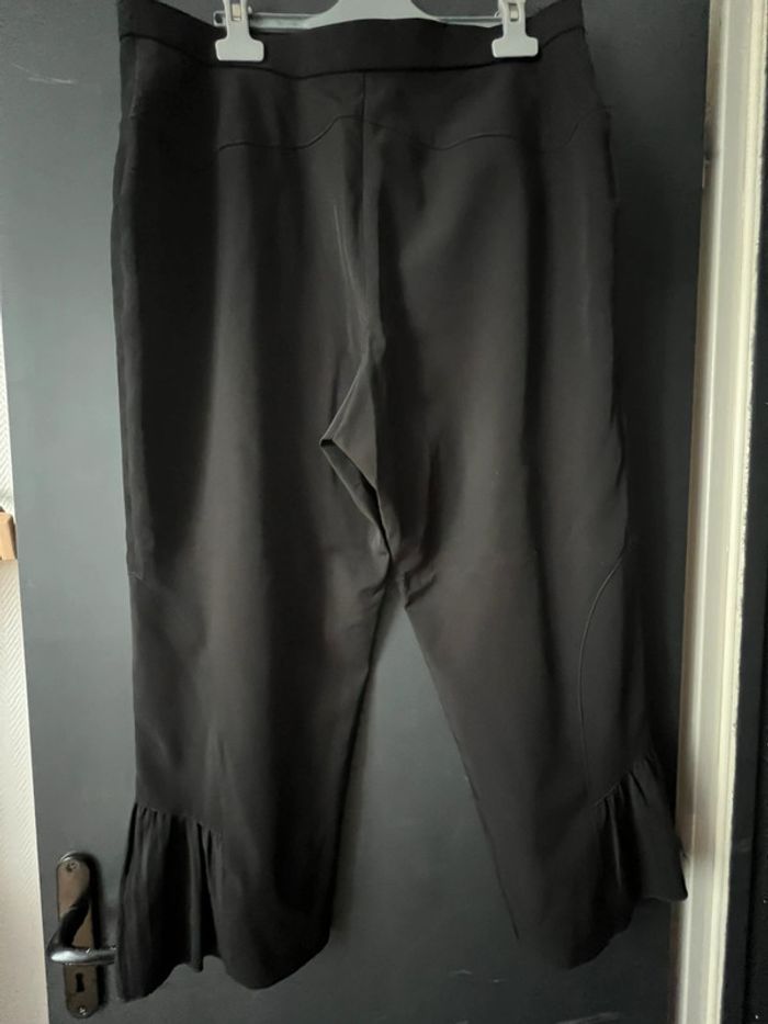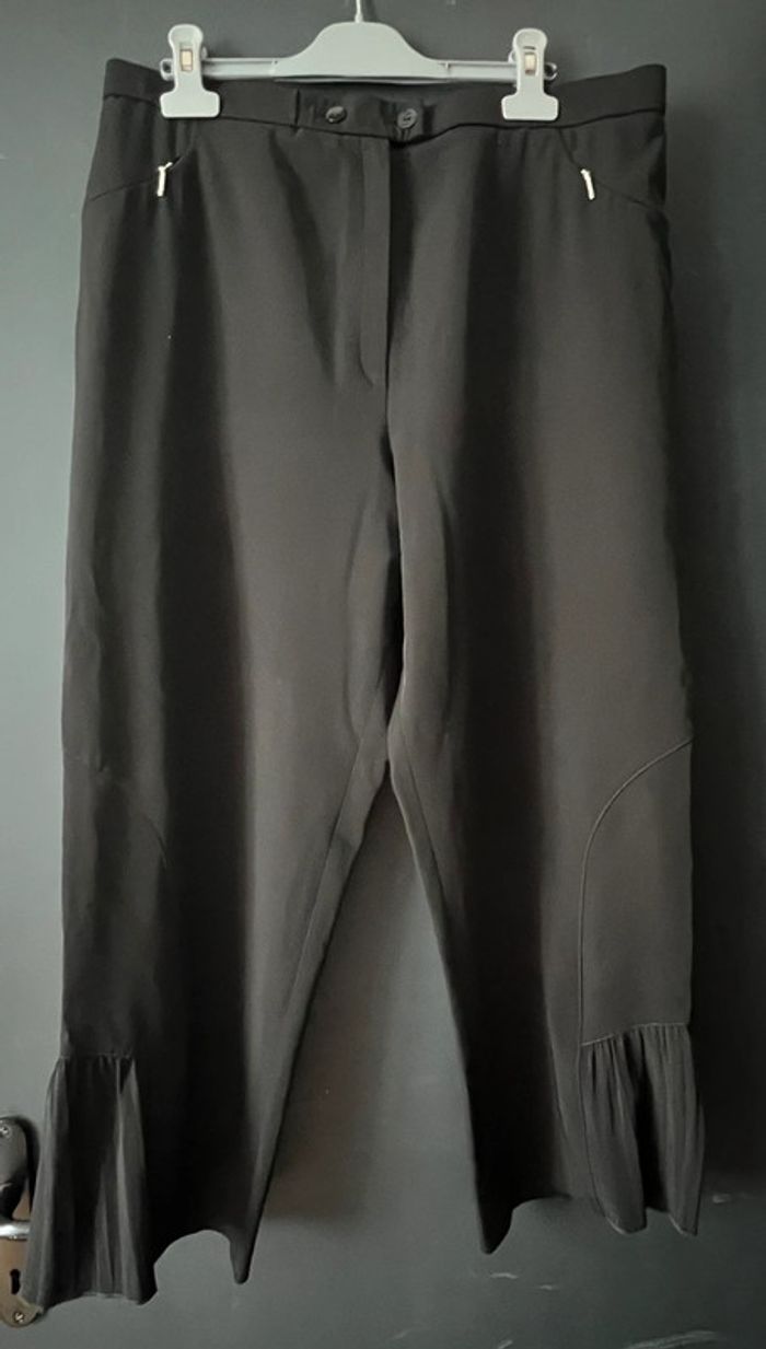 Pantalon noir coupe capri (arrive au dessus de la cheville) Taille: 46 Tour de taille:43cm Longueur entrejambe: 59cm Longueur total: 89cm