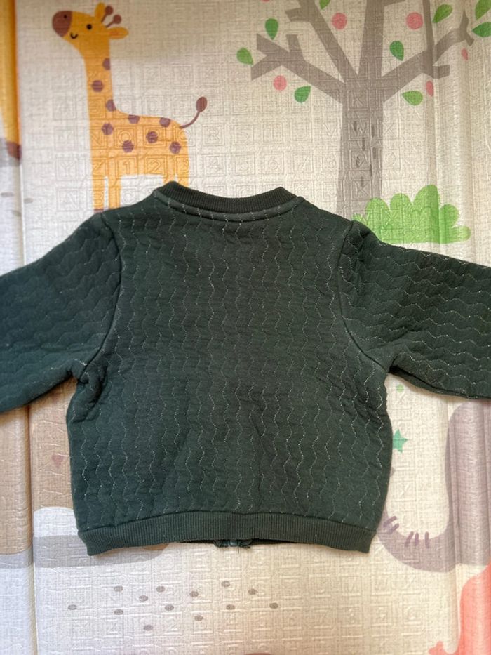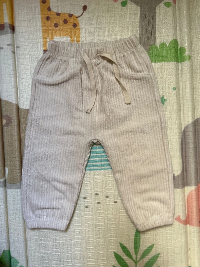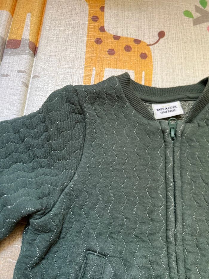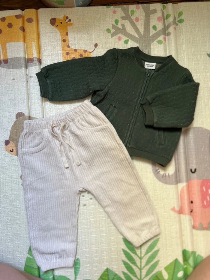 Ensemble gilet + pantalon en velours côtelé Vrai proches sur le gilet Vert foncé avec des fils argenté Fausses poches sur le pantalon en velours côtelé crème 12 mois 74 cm
