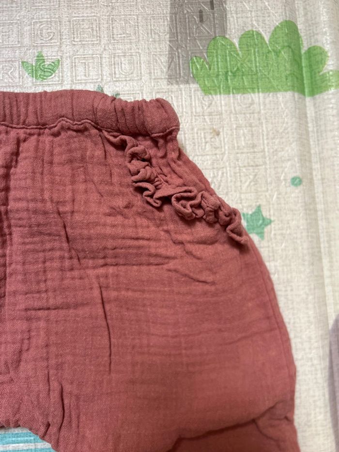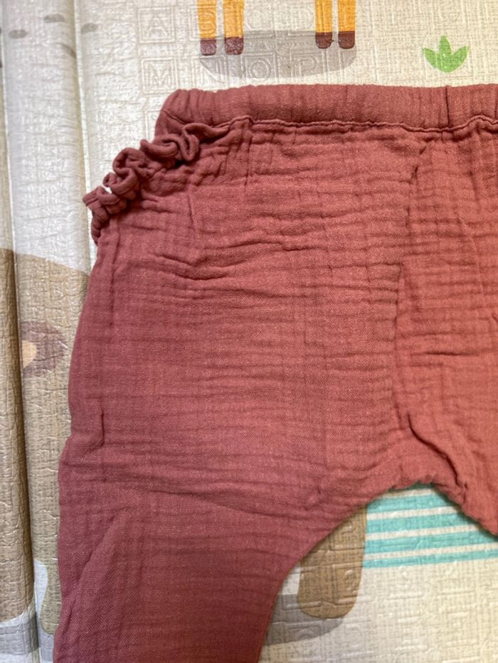 Pantalon léger /sarouel Gaz de coton Vieux rose 12mois 74cm