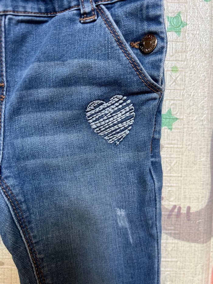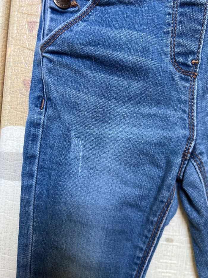 Salopette en jean Effets d’usures déjà présent à l’achat ce n’est pas un défaut. Bretelles réglables Vraies poches devant et derrière Boutons pressions de chaque côté de la taille. 2 ans 86cm