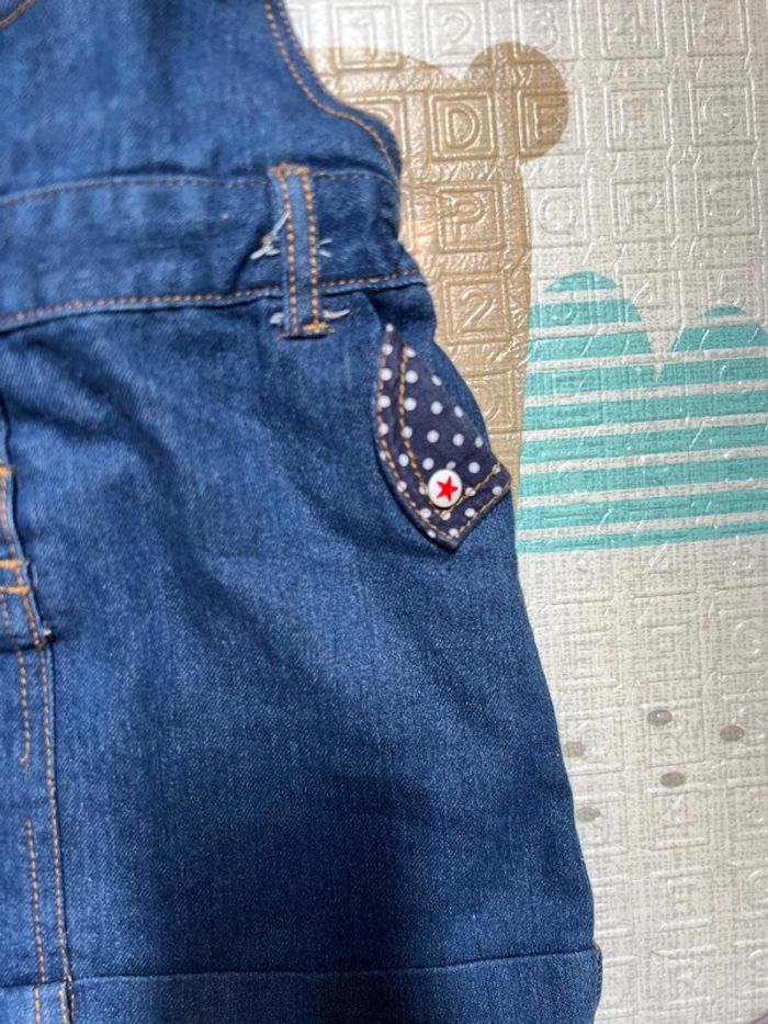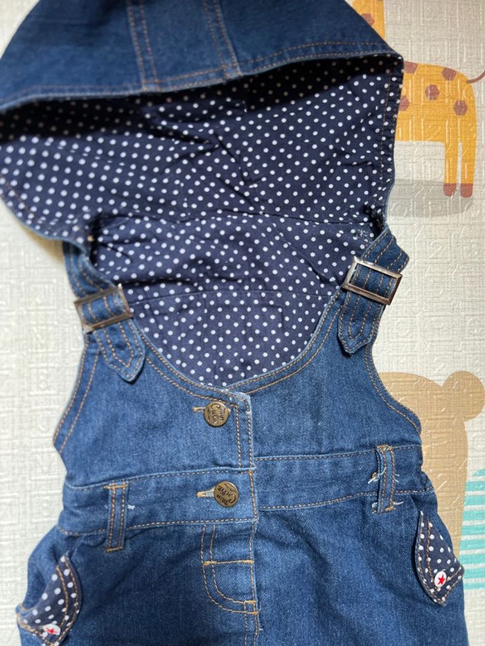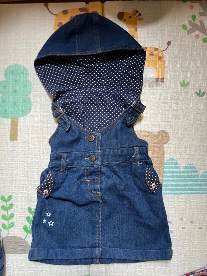 Robe en jean avec capuche Petit défaut voir photo 5 et 6 (couture entrejambe et étoile en bas à gauche (pas sur que ce soit un défaut d’ailleurs) 9-12mois