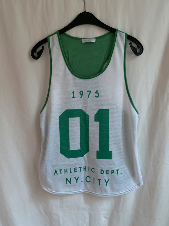 t-shirt dos nageur vert et blanc manque un bout de fil en bas. taille 36 #hautshirt36rachel1911