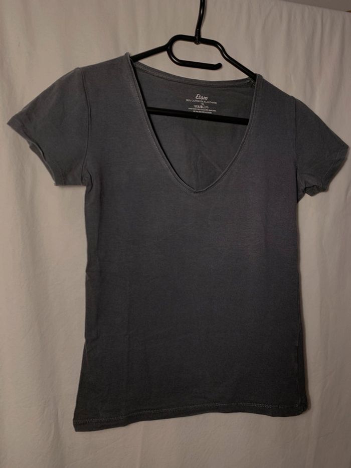 t-shirt moulant gris col v. taille: 36 #hautshirt36rachel1911