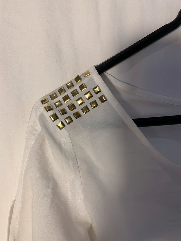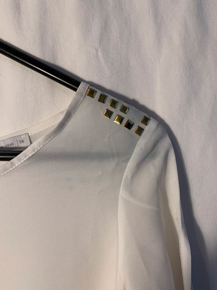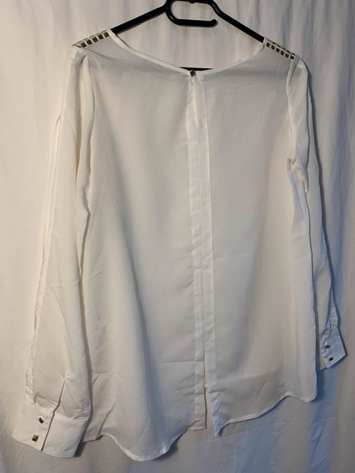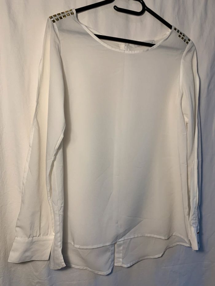 Blouse blanche transparent manches ouvertes arrière fendue en bas ❗️strass manquants. possibilité de tous les enlever. taille: 38/M #hautshirt38rachel1911 #chemise38rachel1911