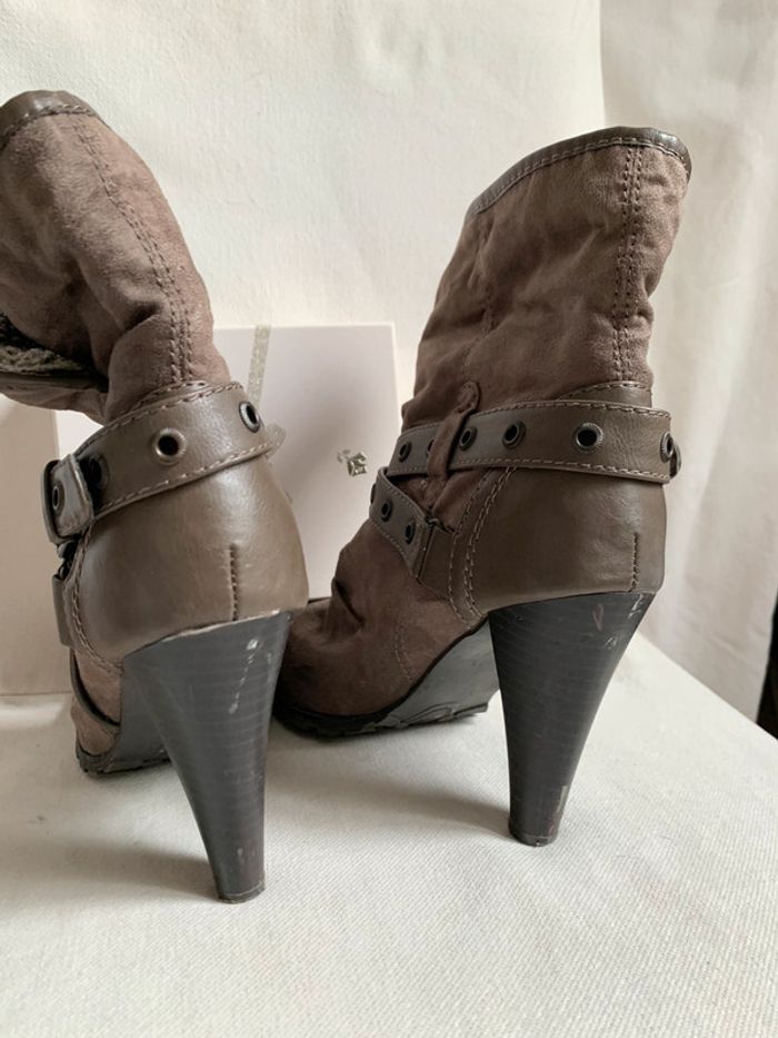 petites bottines à talons marrons. taille: 37 talons: 8 cm ❗️ quelques marques aux talons, embouts légèrement usés. #chaussures37rachel1911