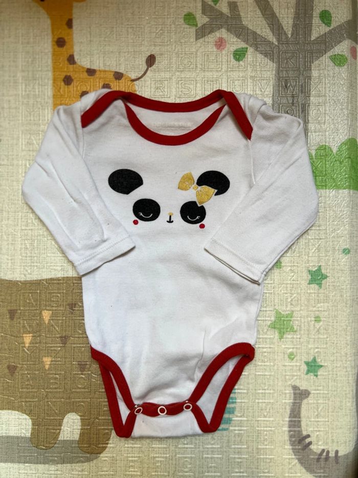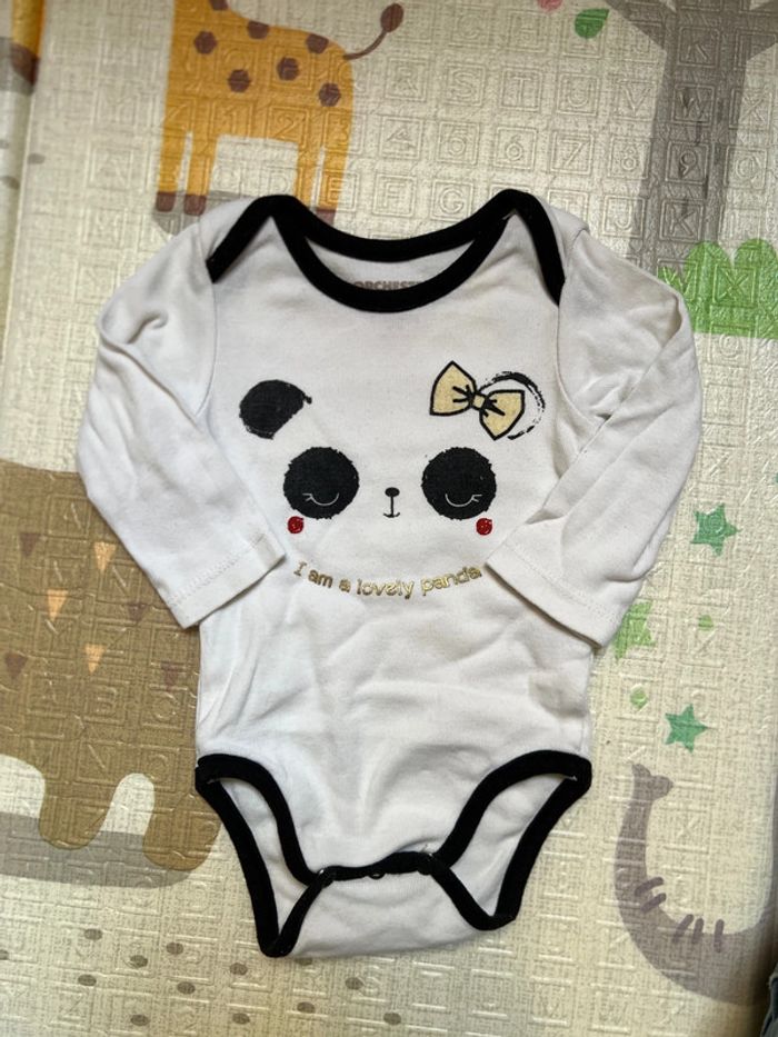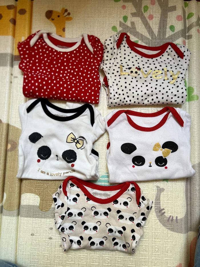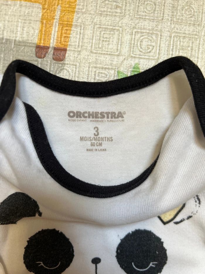Lot de 5 Bodies manches longues panda Orchestra 3 mois 60cm Un peu abîmé sur un bodie (voir dernière photo)