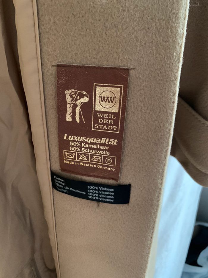 Manteau en poil de chameau et laine vierge. 50% poil de chameau 50% laine vierge doublure 100% viscose léger trou au niveau du col causé par une broche. très bonne qualité. fabrication Allemande. passage au pressing avant envois prix de vente: 2200€ #manteauveste38rachel1911