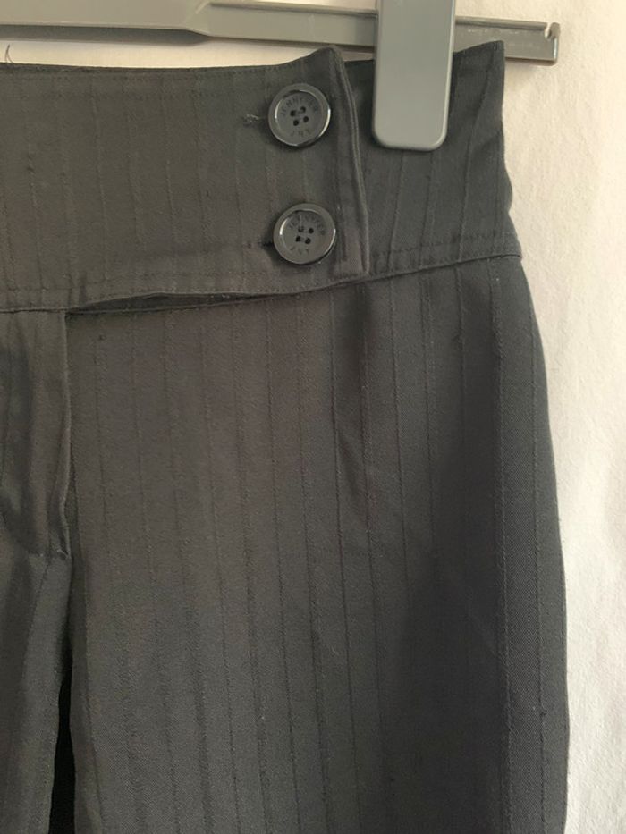 Pantalon noir tissus fluide. à rayures noir. manque un bouton de maintien à l’intérieur mais ne gêne pas à la fermeture. longueur entrejambe: 75cm #pantalonshort34rachel1911
