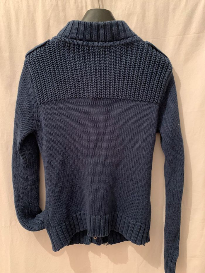 Joli gilet en maille bleu taille: 36 ❗️manque un bouton en haut et une attache en bas. voir photo 3 et 4. #pull36rachel1911