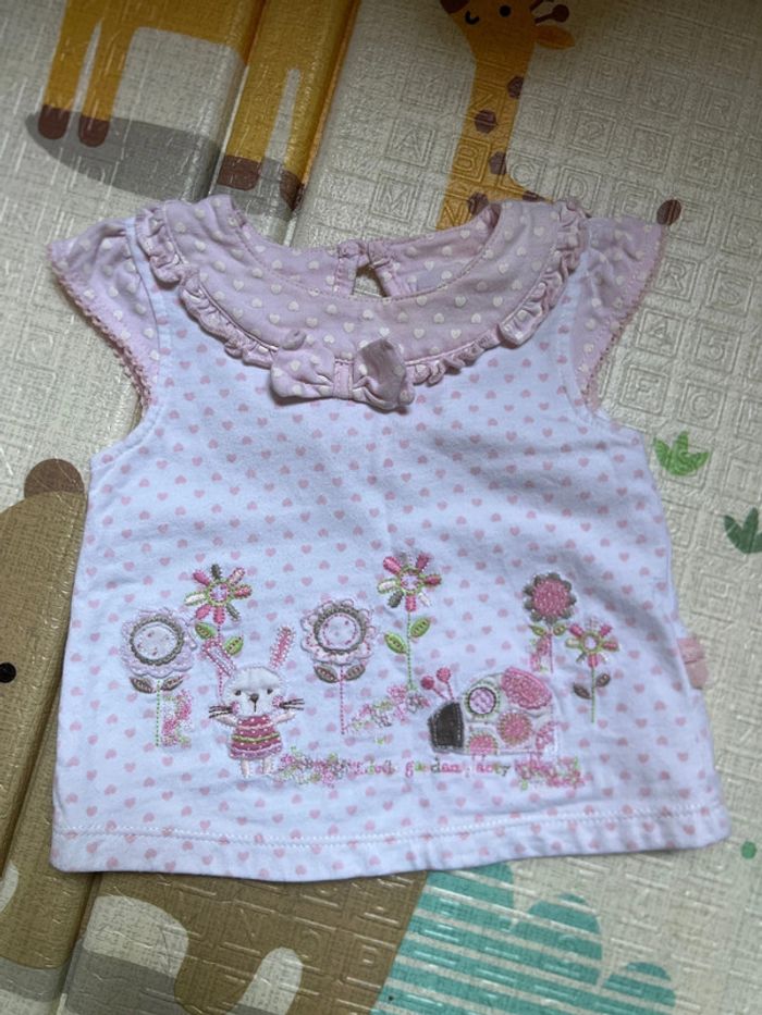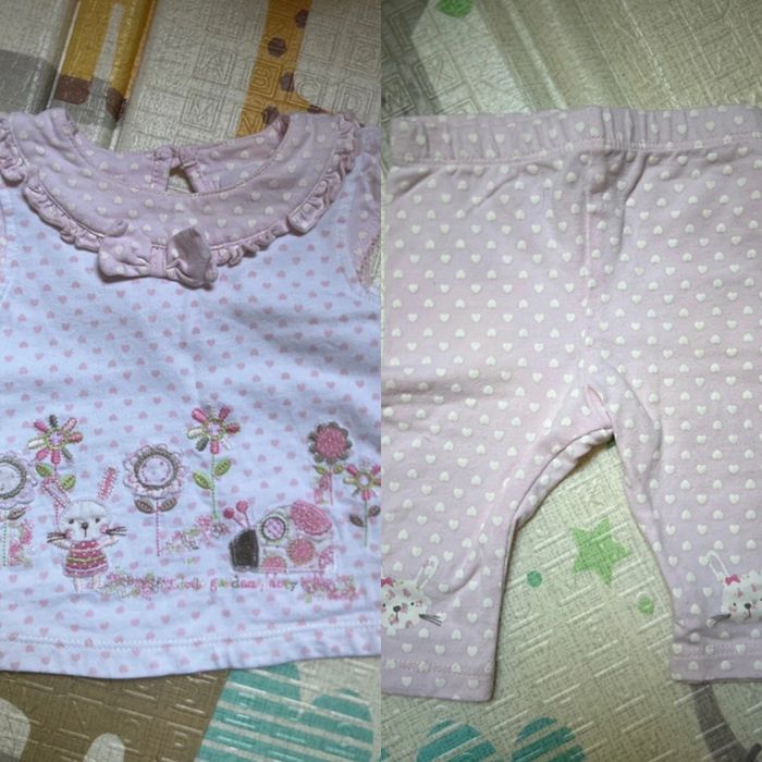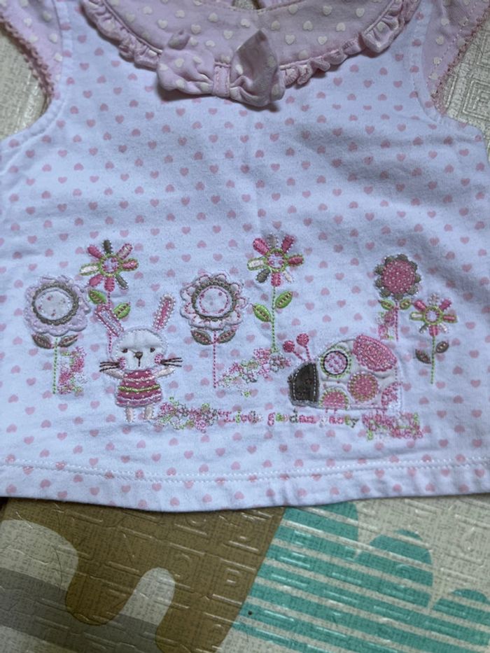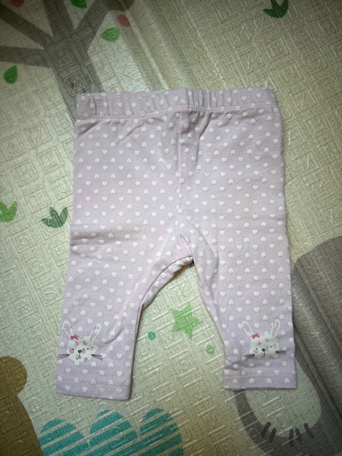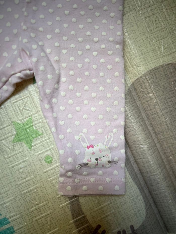 T-shirt + Legging rose petits cœurs Flocage lapin sur le legging 0-3 mois 56-62cm