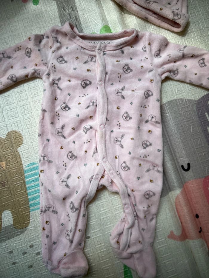 Pyjama et bonnet velours in extenso 1 - 3 mois 56cm