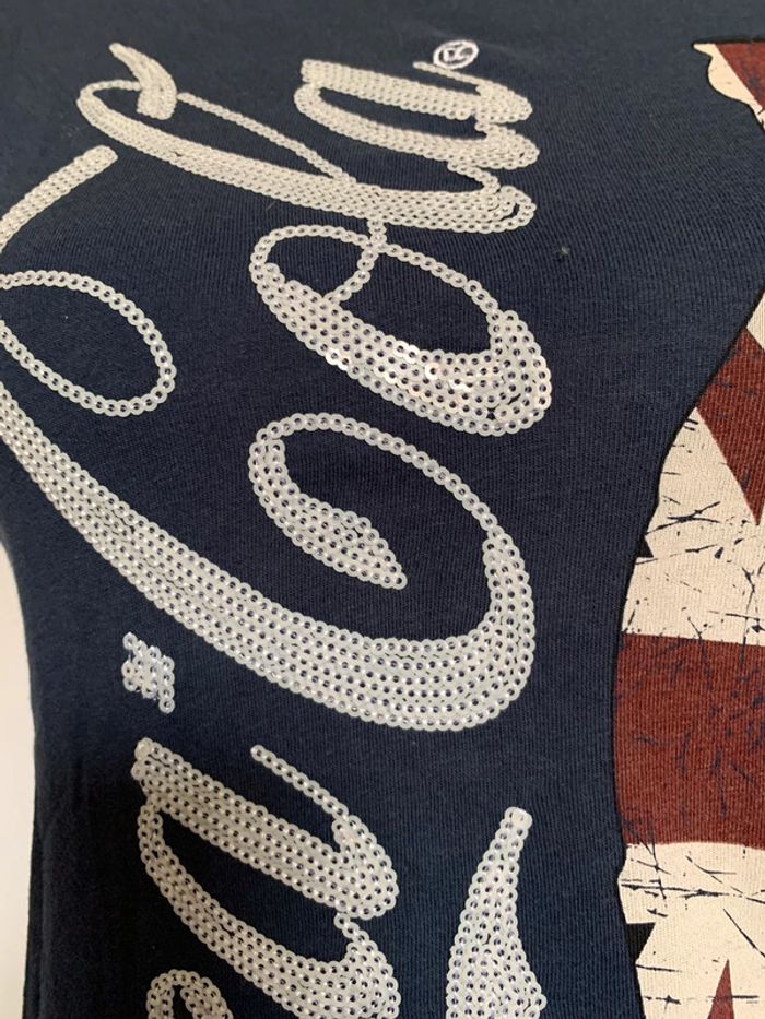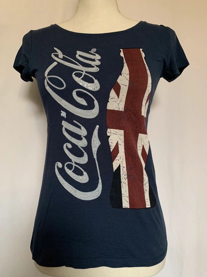 t-shirt coca cola coca cola en sequin blanc. couleur: bleu marine. taille: 34/XS #hautshirt34rachel1911