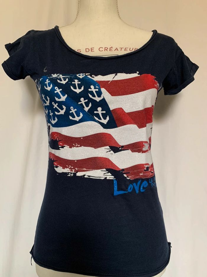 t-shirt inspiration drapeau américain couleur: bleu foncé. taille: 36/S #hautshirt36rachel1911