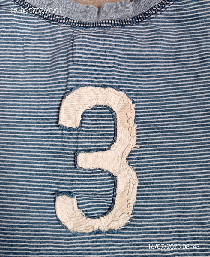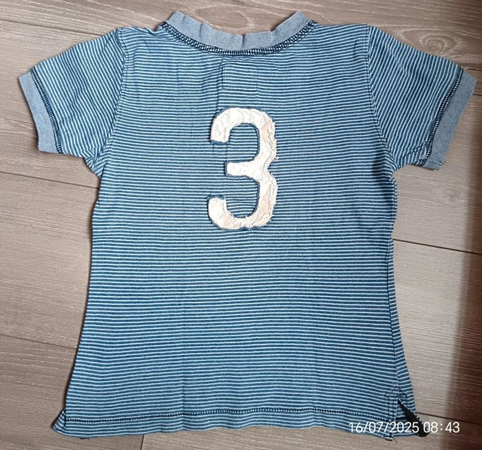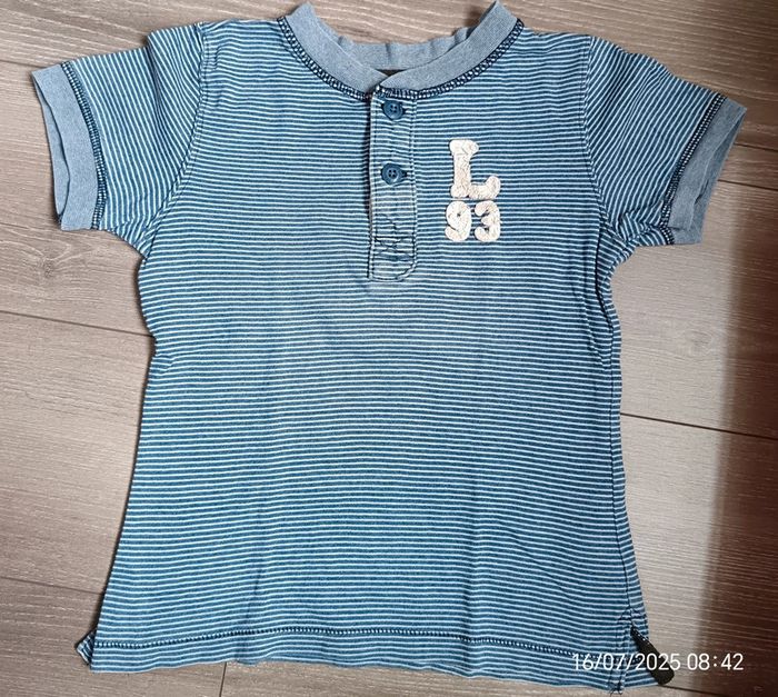 🏷️ Petit tee-shirt à manches courtes, rayé bleu et blanc, avec col boutonné et joli patch brodé « L 93 » sur la poitrine. ⚡️ Détails sympas : petite patte boutonnée sur le devant et fentes d’aisance en bas pour plus de confort. 📏 Taille : 98/104 cm soit 2-4 ans (selon morphologie) ℹ️ 100% coton ෴﹏෴﹏෴﹏෴﹏ ⁠෴﹏෴ N'hésitez pas à consulter mes autres annonces similaires ici 👇 : 👉 #thalie972taille36mois3ansgarçon 👉 #thalie972taille4ansgarçon ෴﹏෴﹏෴﹏෴﹏ ⁠෴﹏෴