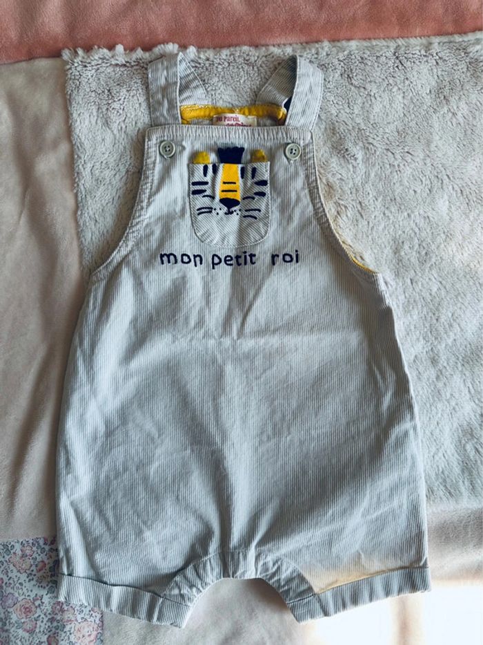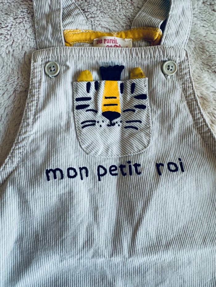 Barboteuse beige à fine rayures et motif tigre mon petit roi 71cm #mmebarbier54garçon9mois