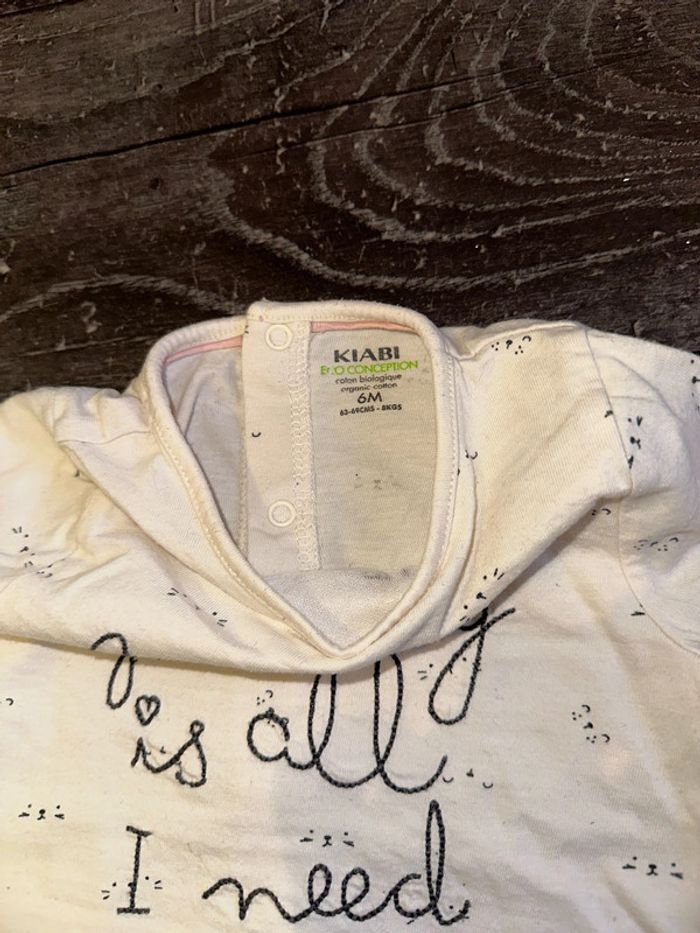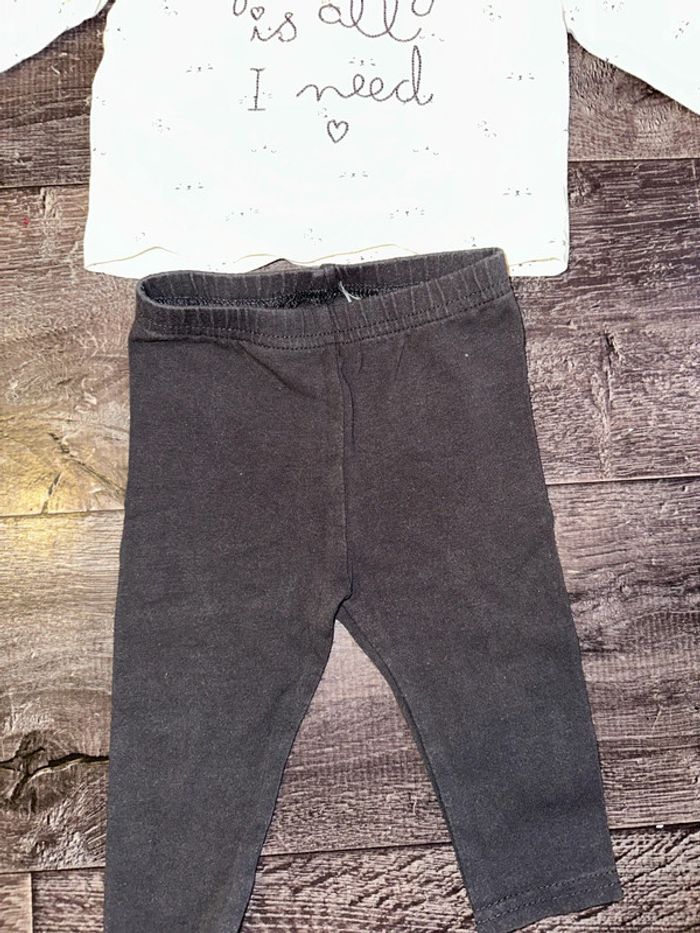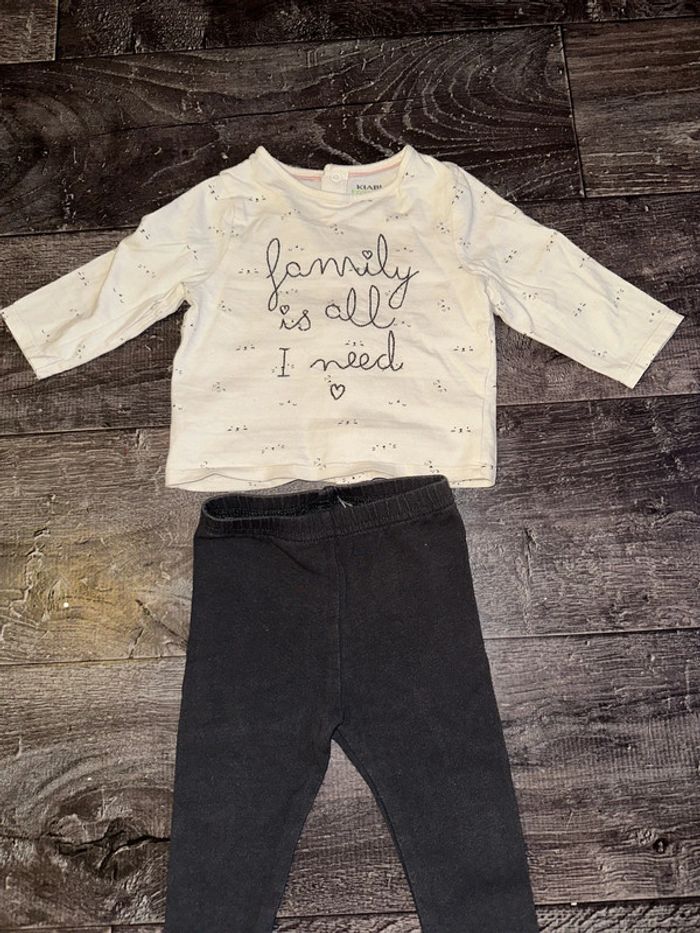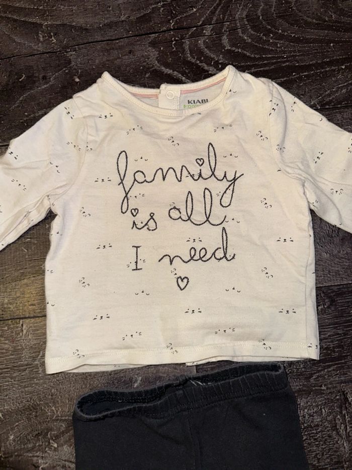 T-shirt manches longues fermeture dans le dos Kiabi Legging gris noir 6 mois Family is all i need (chat )