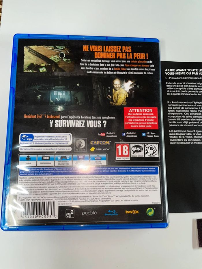 Résident Evil VII - Jeu PS4/VR Sans Notice Version Française Sony - photo numéro 1
