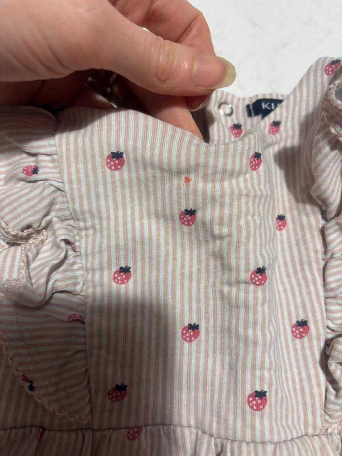 Robe fraise bébé fille 24 mois Kiabi Très bon état général sauf une petite tache rouge sur le haut de la robe voir photo Réductions actives sur les lots #robebébéfille #kiabi #24mois