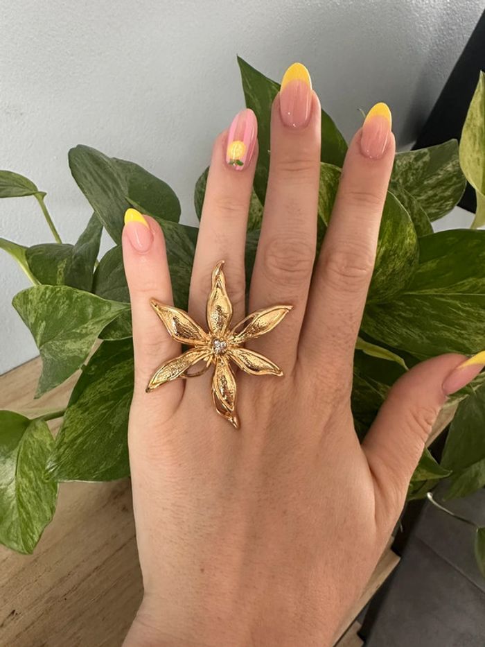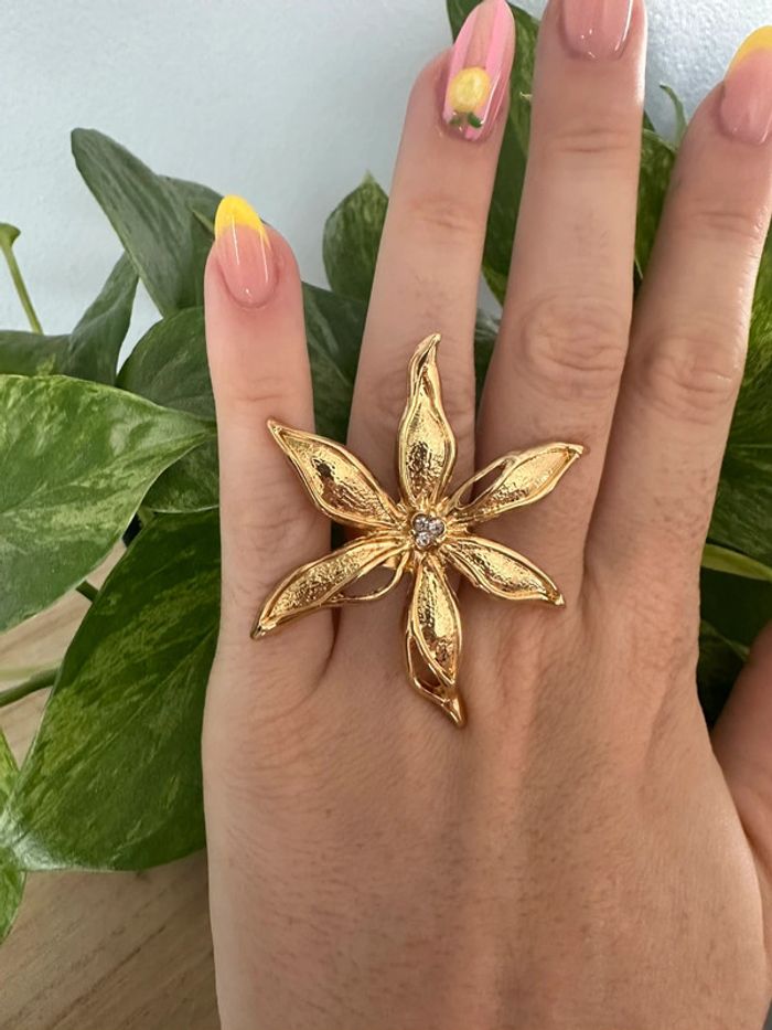 Grosse bague fleur dorée - photo numéro 1