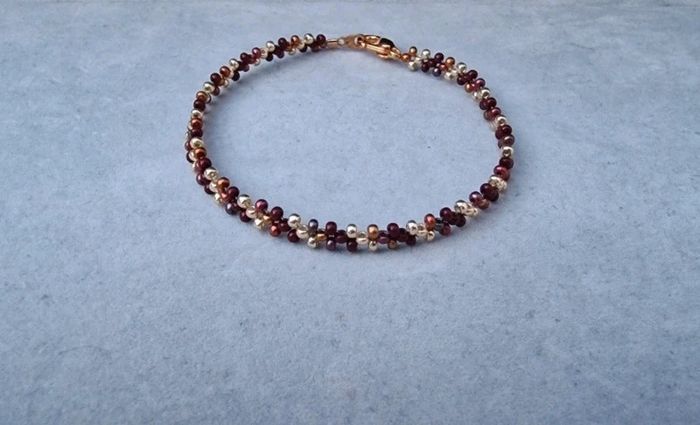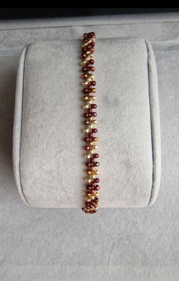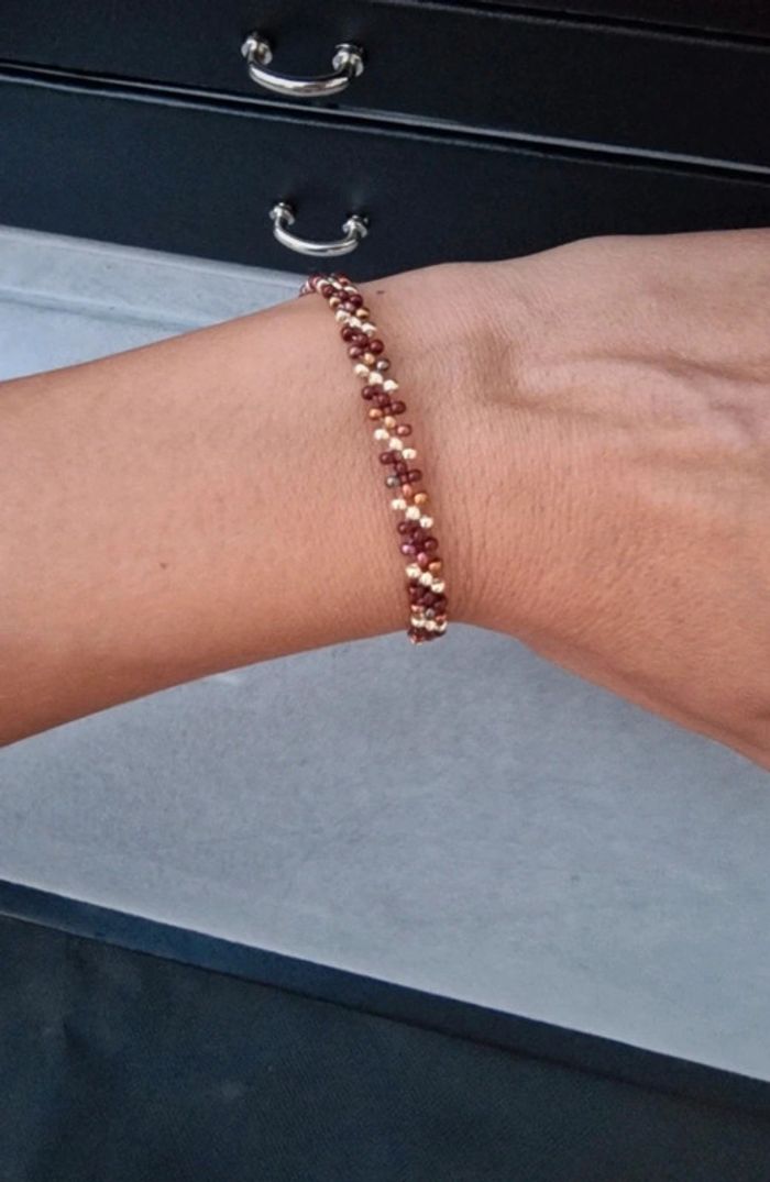 Bracelet en perles doré et marron Marque Crystalia Perles comme neuf Taille 18cm #doré #braceletdoré #perlesderocailles #braceletenperles #perles&co