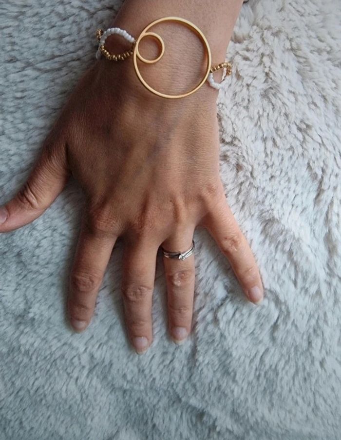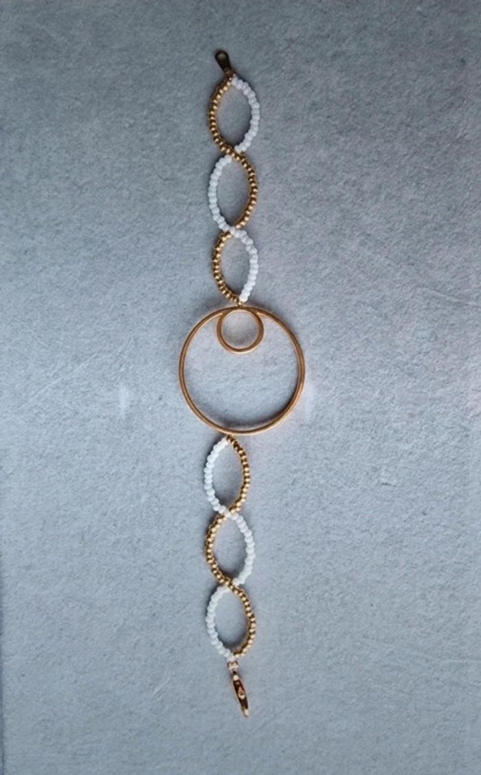 Bracelet en perles et gros rond (3cm) en acier inoxydable doré Marque Crystalia Perles comme neuf Taille 16,5cm idéal poignet fin Je l'ai également en 20cm n'hésitez pas à me contacter si besoin #perle&co #braceletdoré #ladrogueriemarchandedecouleurs #acierinoxydable #fetedesmeres #braceletelegant #perles