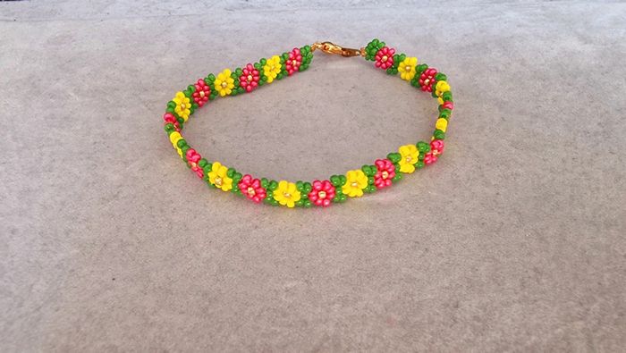 Bracelet en perles motif fleurs thème printemps Marque Crystalia Perles comme neuf Taille 18cm #braceletfleurs #braceletfemme #perles&co #fetedesmeres #braceletenperles #perlesderocailles