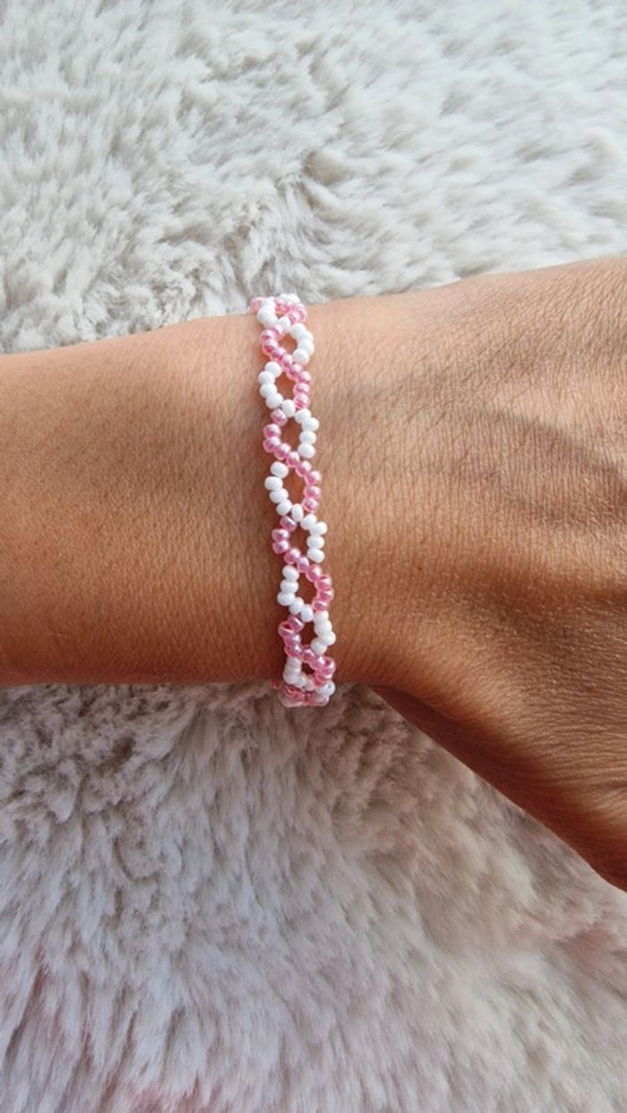 Bracelet en perles rose et blanc nacré Marque Crystalia Perles comme neuf Taille 18cm #perlesderocailles #braceletfemme #perles&co #fetedesmeres