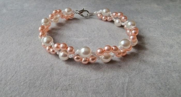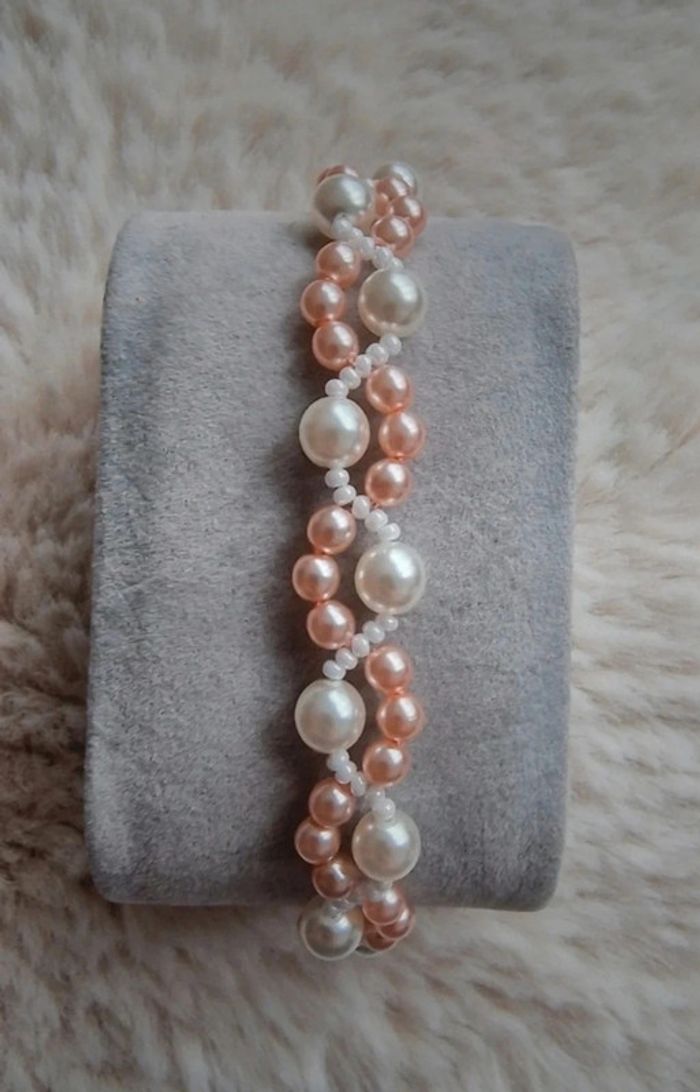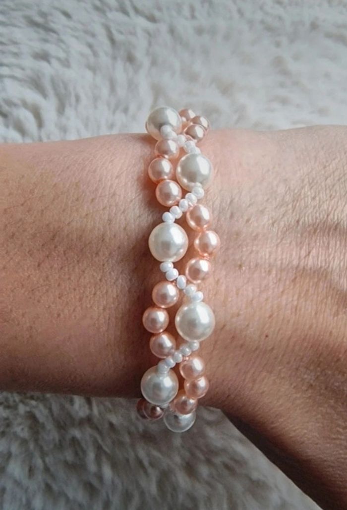 Bracelet en perles rose clair et blanc nacré Marque Crystalia Perles comme neuf Taille 17,5 cm #perles&co #braceletmariage #braceletdeperles #braceletfemme #fetedesmeres