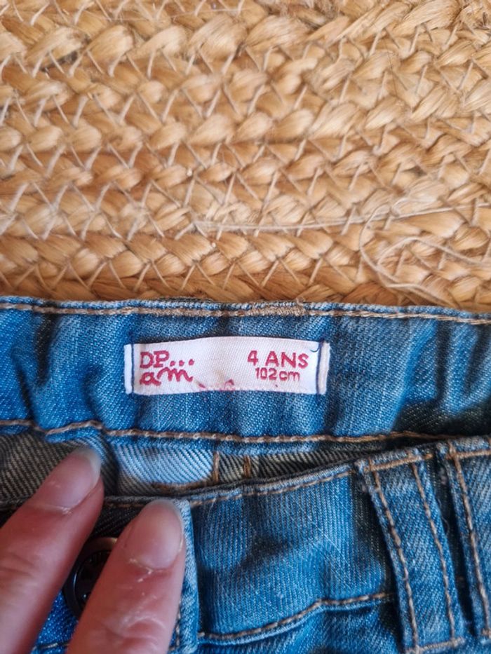 Jolie ensemble tee-shirt rose et jupe en jean sergent major/ du pareil au même 4 ans - photo numéro 4