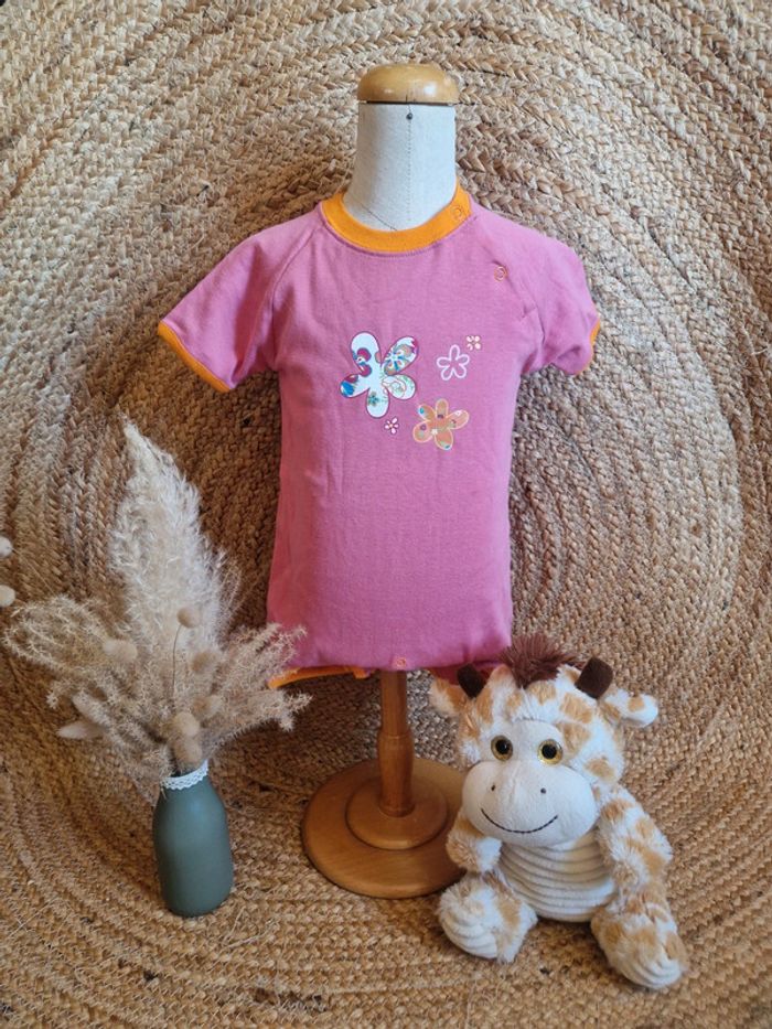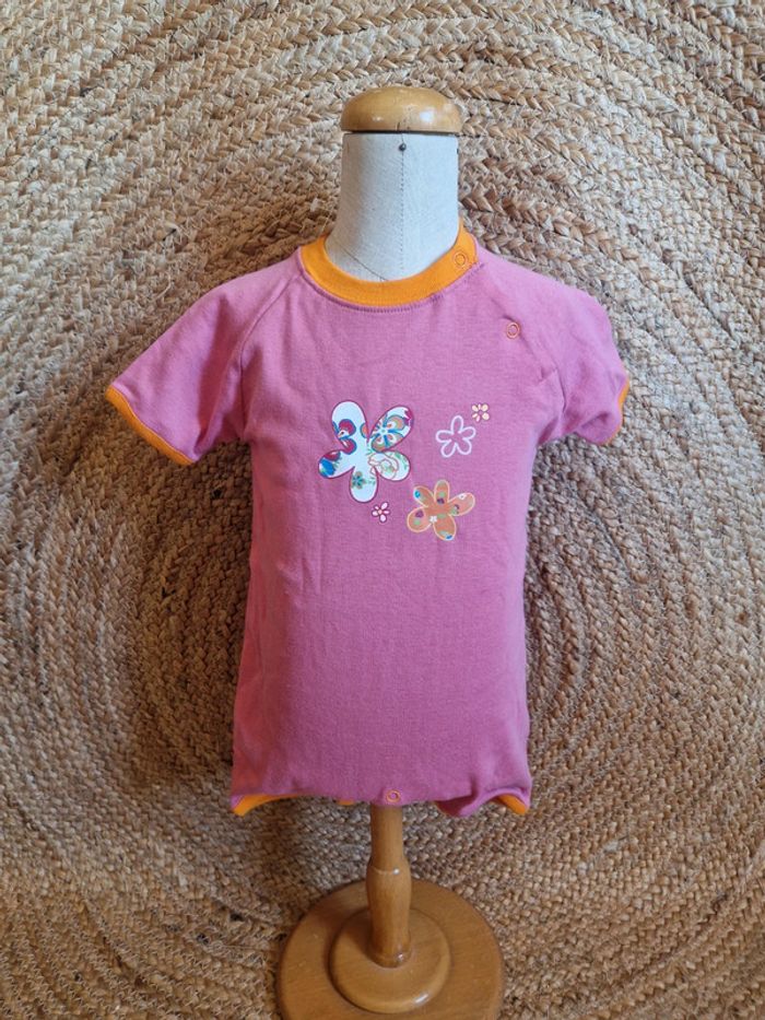 Neuf body été rose à fleurs fille 6 mois - photo numéro 2