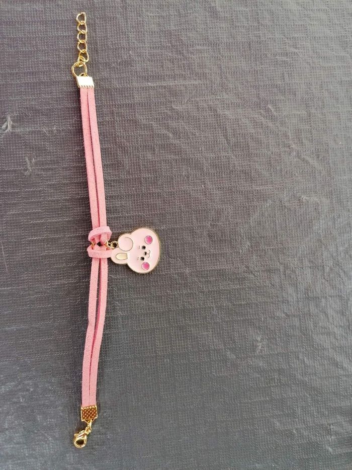 Bracelet en suédine rose avec pendentif Cooky (le Line Friend de Jungkook, un membre du groupe de Kpop BTS) . Possibilité de faire à la taille que vous souhaitez