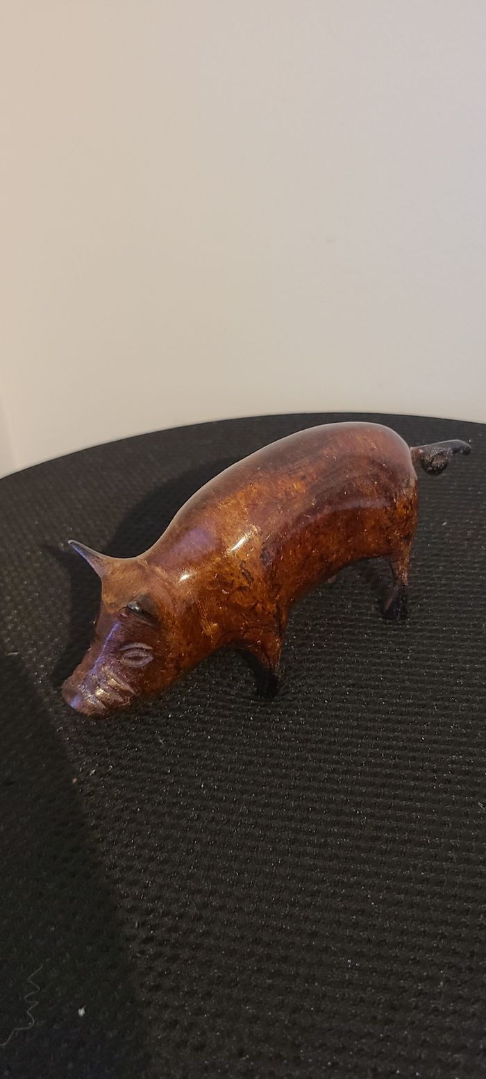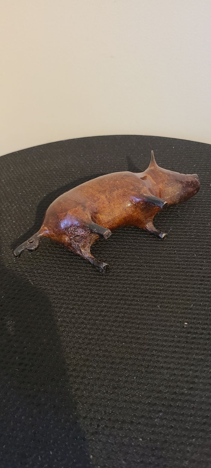 Figurine de cochon  sculptée à la main, style moderne du milieu du siècle, sculpture animalière rust - photo numéro 1