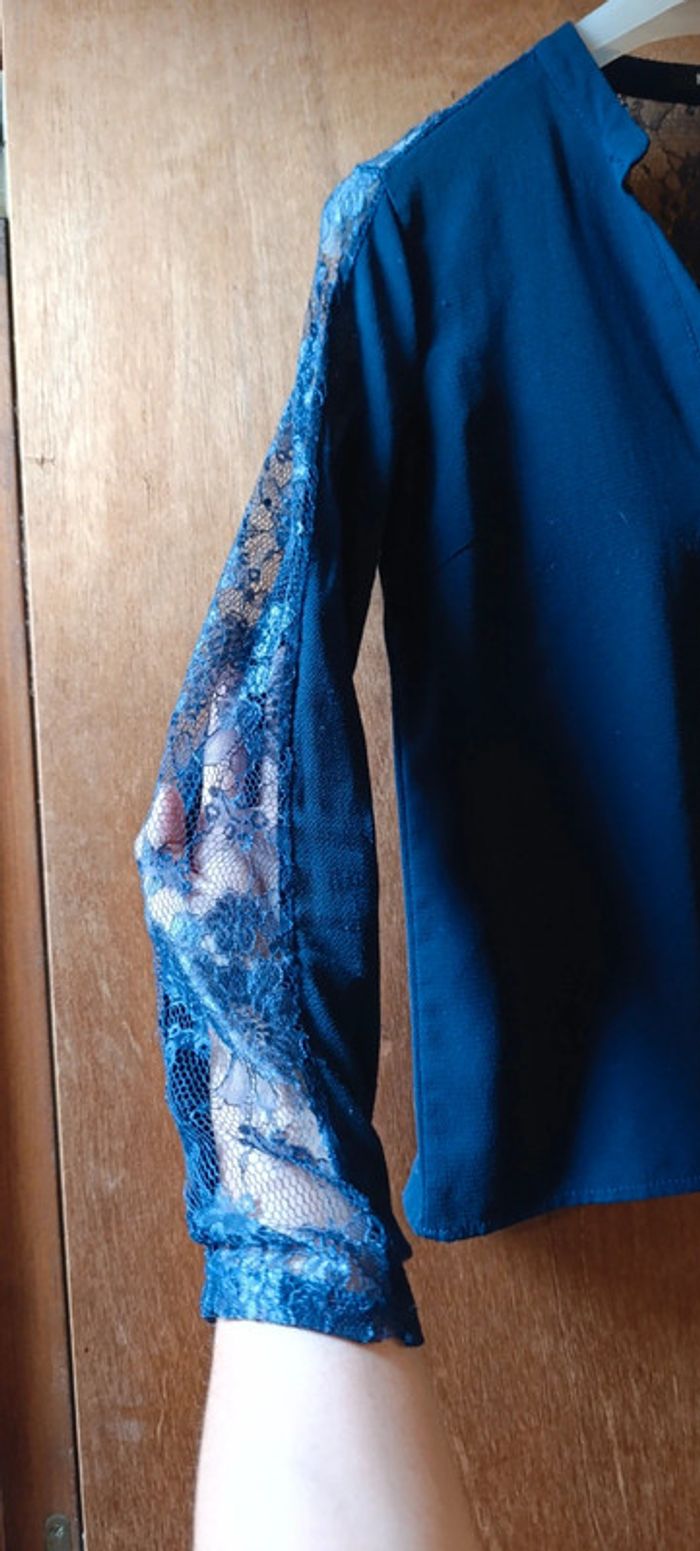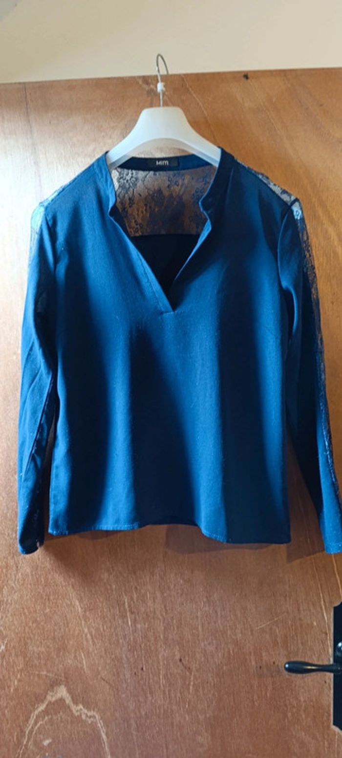 Chemise effet dentelle sur les manches et le haut du dos bleu marine taille S Mim #femmefanpiee