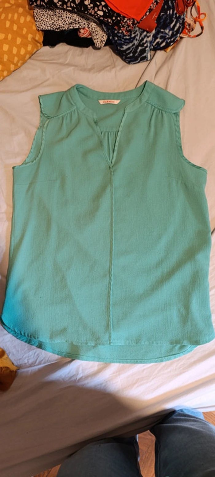 Blouse chemise sans manche camaïeu vert d'eau taille 36 #femmefanpiee