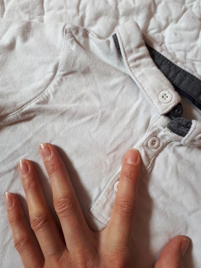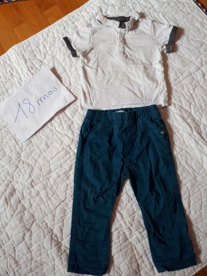 Ensemble okaidi 18mois pantalon toile taille ajustable et tee-shirt avec petite tâche vers le col #18moisgarconfanpiee