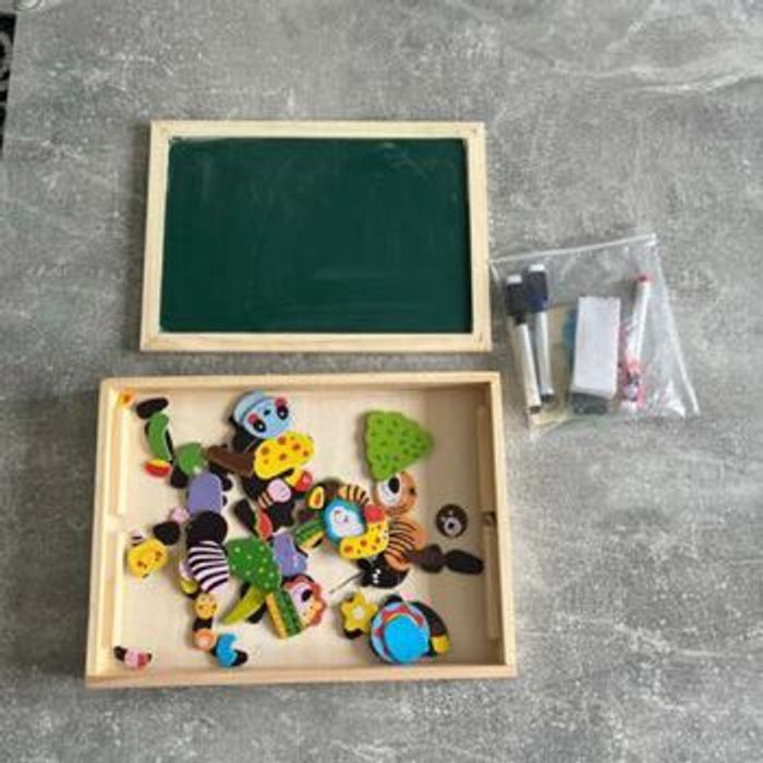 Puzzle en bois magnétique avec tableau double face aimantée en très bon état