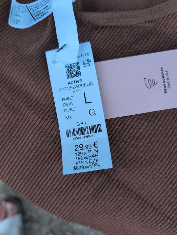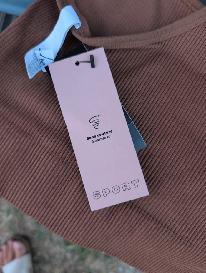 Brassière de sport Etam Marron Taille L Sans couture Neuf avec étiquette Polyamide et elasthane #etam #sport #l #brassiere #neuf #tenuedesport #fitness