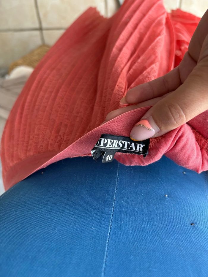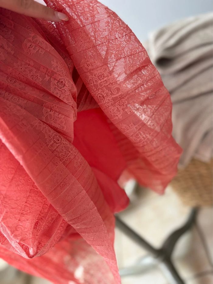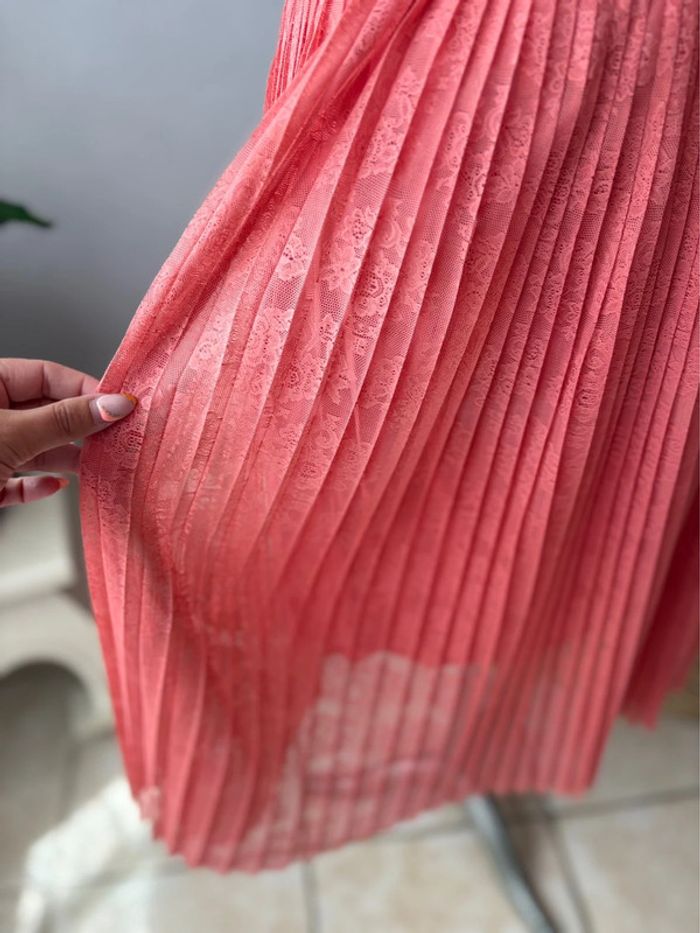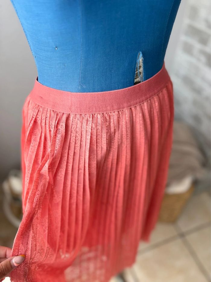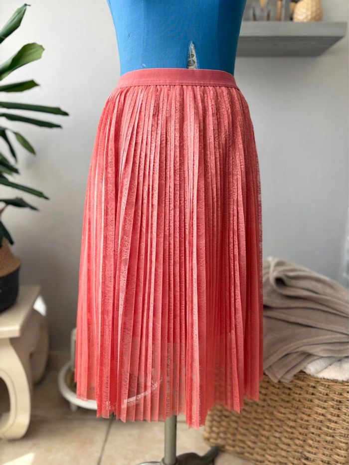 Jupe mi longue plissée - dentelle rose - taille 40/L - comme neuve