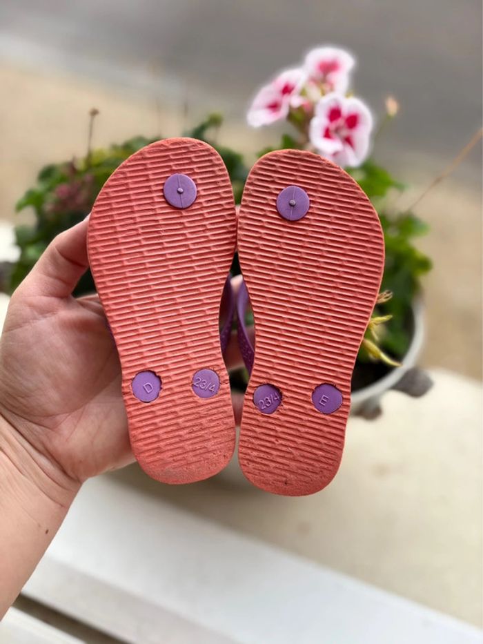 Tong Havaianas - rose corail violet - portée 1 fois - pointure 23/24 - photo numéro 4