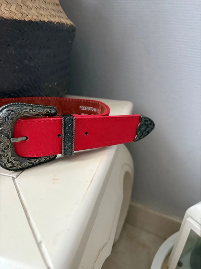 Ceinture Western 100% cuir - rouge vif boucle argenté - taille 65 cm - - photo numéro 5