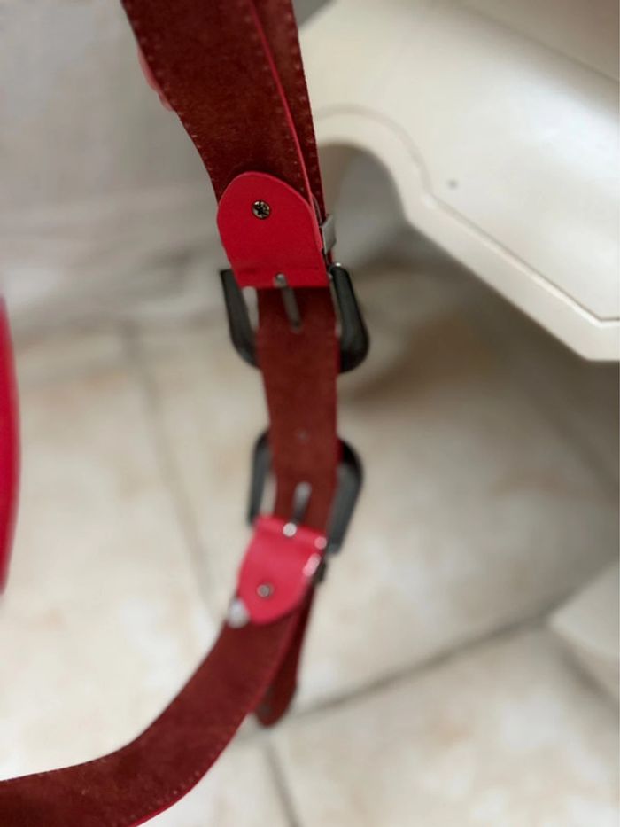 Ceinture Western 100% cuir - rouge vif boucle argenté - taille 65 cm - - photo numéro 6