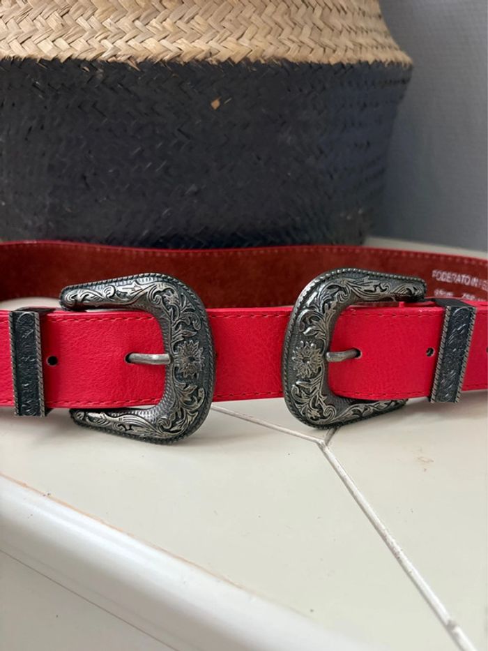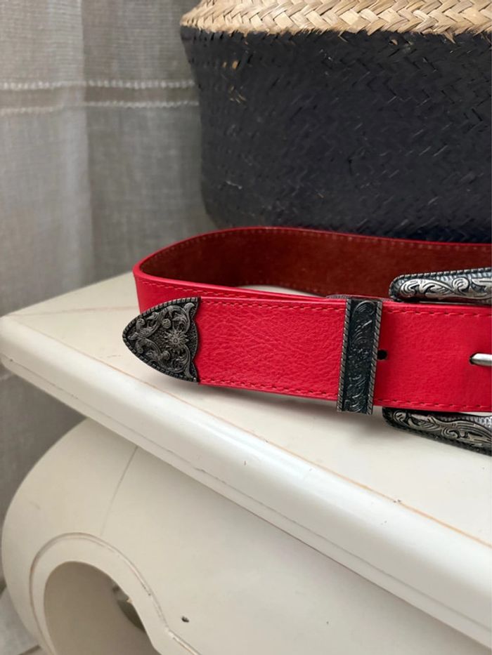 Ceinture Western 100% cuir - rouge vif boucle argenté - taille 65 cm - - photo numéro 2