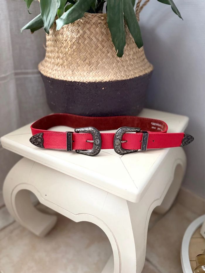 Ceinture Western 100% cuir - rouge vif boucle argenté - taille 65 cm - - photo numéro 1