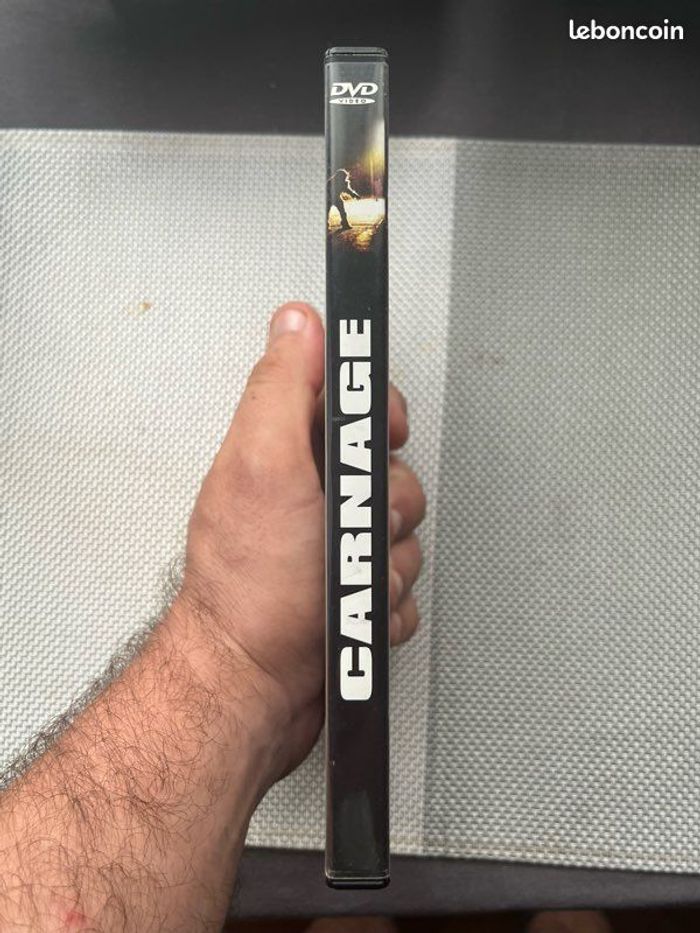 Vends DVD du film « carnage ». Le boîtier présente de légères marques mais rien d’important. Le dvd est en très bon état. Fonctionne parfaitement. Il pese 91g. Idéal pour les amateurs de cinéma, du genre ou collectionneurs.