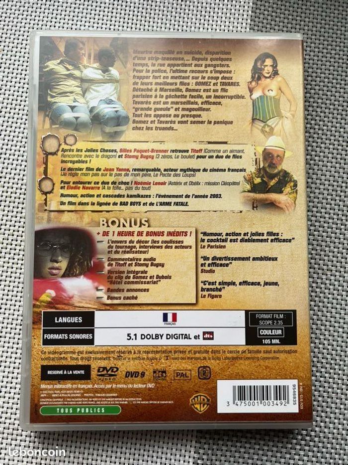 Vends DVD du film « Gomez et Tavares » avec Stomy Bugsy et Titoff. Le boîtier est en très bon état général. Le DVD présente de légères traces mais rien d’important. Fonctionne parfaitement. Il pèse 113g. Idéal pour les amateurs de cinéma, comédie ou collectionneurs.