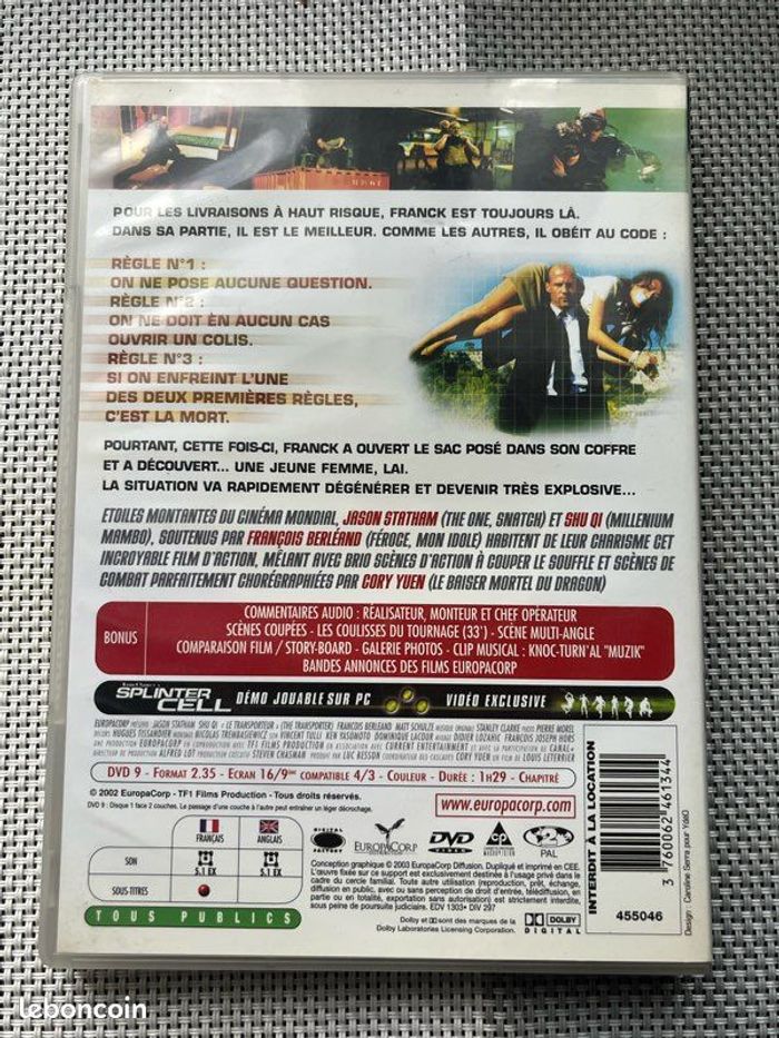 Vends DVD du film « Le transporteur » avec Jason Statham. Le boîtier est en très bon état général. Le DVD présente de légères traces mais rien d’important. Fonctionne parfaitement. Il pèse 88g. Idéal pour les amateurs de cinéma, fans de l’acteur ou collectionneurs.