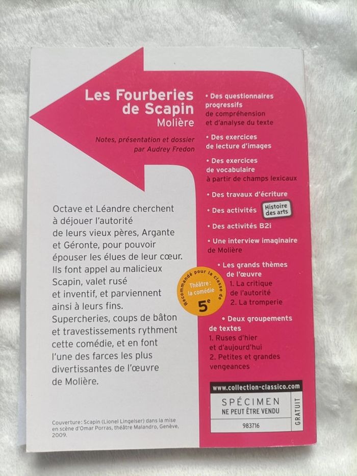 📘 Les Fourberies de Scapin – Molière, édition Classico Collège État : Bon Description : Classique théâtral étudié au collège. Texte intégral avec notes et dossier. Bon état général. 💨 Envoi rapide et soigné 🔎 Tous mes livres : #LivresDePeylhomalyejha #théâtre #collège #molière #VintedBooks #LivresDePeylhomalyejha