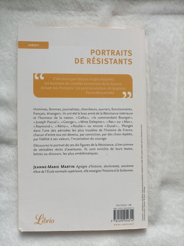 📖 Portraits de résistants – Jeanne-Marie Martin État : Bon état Description : Une lecture forte et éducative sur des figures marquantes de la Résistance. Pages intactes, couverture avec de légères marques. 💨 Envoi rapide et soigné 🔎 Tous mes livres : #LivresDePeylhomalyejha #histoire #résistance #lecture #VintedBooks #LivresDePeylhomalyejha